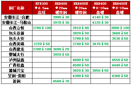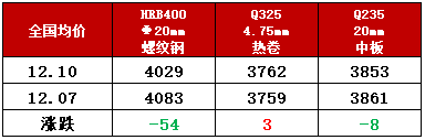12月10日,全國12家鋼廠發(fā)布調(diào)價(jià)信息,價(jià)格小幅下跌,調(diào)整幅度-100~-20元/噸。